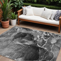 9' X 12' Black Gray And White Abstract Washable Non Skid Indoor Outdoor Area Rug