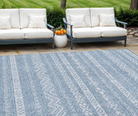 9' X 12' Blue And Denim Blue Southwestern Washable Indoor Outdoor Area Rug