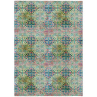 9' X 12' Blue And Green Floral Medallion Washable Non Skid Indoor Outdoor Area Rug