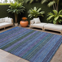 9' X 12' Blue And Green Striped Washable Non Skid Indoor Outdoor Area Rug