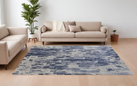 9' X 12' Blue and Ivory Abstract Hand Woven Distressed Area Rug