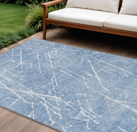 9' X 12' Blue And Ivory Abstract Washable Indoor Outdoor Area Rug