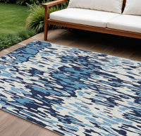 9' X 12' Blue Aqua And Ivory Striped Washable Indoor Outdoor Area Rug