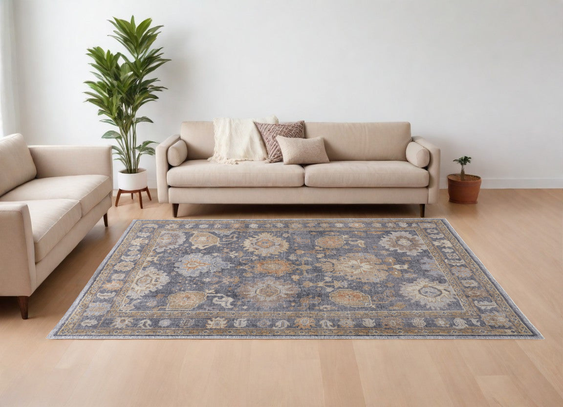 Add some artistry to your room with this 9-foot x 12-foot blue gray and tan oriental hand knotted worn faded area rug. Crafted by skilled artisans, this hand knotted rug is genuine and unique. No two will be exactly alike. This rectangle shaped rug features a oriental design that will add a functional and decorative accent to your space. Ideal for spaces with kids and pets, this rug is stain resistant to help repel dirt and spilled liquids. This larger sized rug is ideal to create a focal point or statement piece in your room. 108-inch h x 144-inch w x 0.35-inch d