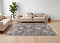 9' X 12' Blue Gray and Tan Oriental Hand Knotted Worn Faded Area Rug