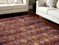 9' X 12' Blue Yellow And Red Floral Distressed Non Skid Area Rug