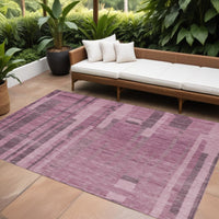 9' X 12' Blush And Brown Striped Washable Indoor Outdoor Area Rug