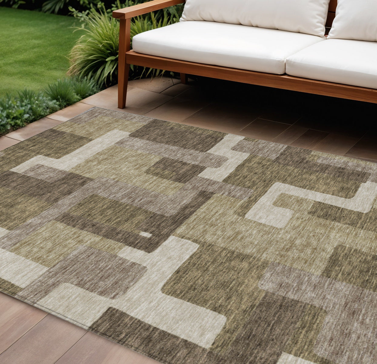 Add great coloration and comfortable texture to your space with this 9-foot x 12-foot brown and beige abstract washable indoor outdoor area rug. This rectangle shaped rug features a abstract design that will work well both indoors or out. A classic shape marries with good looking design for your living room, hall, bedroom, porch, patio, or poolside. Ideal for outdoor spaces or high traffic areas with kids and pets, this rug is made from heavy duty polyester that is stain resistant to help repel water, dirt, and stains. Versatile in use, durable, and easy to maintain, this rug is an ideal solution to add a decorative and inviting touch to your indoor or outdoor space. 108-inch h x 144-inch w x 0.19-inch d.