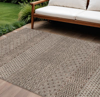 9' X 12' Brown And Ivory Chevron Washable Indoor Outdoor Area Rug
