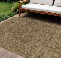 9' X 12' Brown And Taupe Floral Washable Indoor Outdoor Area Rug