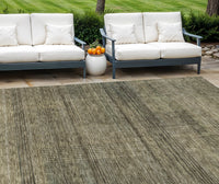 9' X 12' Brown Beige And Taupe Striped Washable Indoor Outdoor Area Rug