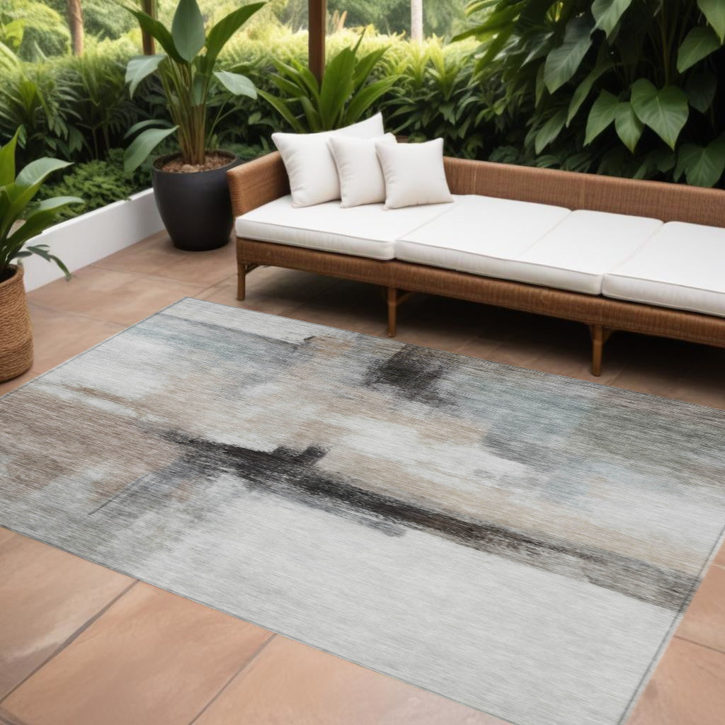 9' X 12' Brown Black And Gray Abstract Washable Indoor Outdoor Area Rug