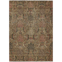 9' X 12' Brown Charcoal And Brick Red Damask Washable Indoor Outdoor Area Rug