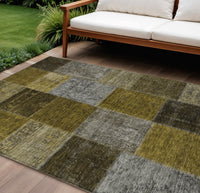 9' X 12' Brown Gold And Taupe Patchwork Washable Indoor Outdoor Area Rug