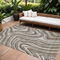 This 9-foot x 12-foot brown ivory and taupe abstract washable indoor outdoor area rug, is a great way to add warmth to a room. This rectangle shaped rug features a abstract design that will work well both indoors or out. A classic shape marries with good looking design for your living room, hall, bedroom, porch, patio, or poolside. Ideal for outdoor spaces or high traffic areas with kids and pets, this rug is made from heavy duty polyester that is stain resistant to help repel water, dirt, and stains. Versatile in use, durable, and easy to maintain, this rug is an ideal solution to add a decorative and inviting touch to your indoor or outdoor space. 108-inch h x 144-inch w x 0.19-inch d.