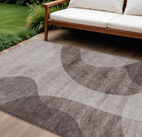 9' X 12' Brown Taupe And Beige Abstract Washable Indoor Outdoor Area Rug