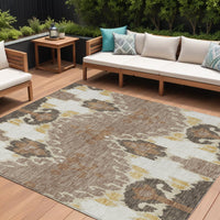 9' X 12' Brown Taupe And Beige Ikat Washable Indoor Outdoor Area Rug