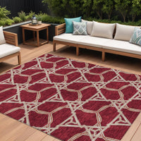 9' X 12' Burgundy And Gold Geometric Washable Indoor Outdoor Area Rug