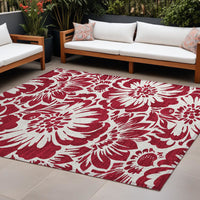 9' X 12' Burgundy And White Floral Washable Non Skid Indoor Outdoor Area Rug
