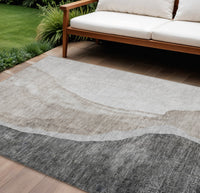 9' X 12' Charcoal Gray And Taupe Abstract Washable Indoor Outdoor Area Rug