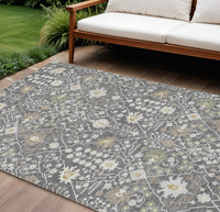9' X 12' Charcoal Ivory And Green Oriental Washable Indoor Outdoor Area Rug