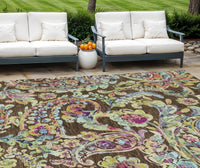 Add great coloration and comfortable texture to your space with this 9-foot x 12-foot chocolate and artichoke green paisley washable indoor outdoor area rug. This rectangle shaped rug features a paisley design that will work well both indoors or out. A classic shape marries with good looking design for your living room, hall, bedroom, porch, patio, or poolside. Ideal for outdoor spaces or high traffic areas with kids and pets, this rug is made from heavy duty polyester that is stain resistant to help repel water, dirt, and stains. Makes a great way to dress up your patio, porch, or poolside, but also works well as a durable and easy to maintain option in the kitchen, family room, or mudroom. 108-inch h x 144-inch w x 0.19-inch d.