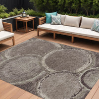 Set an inviting tone in your space with this 9-foot x 12-foot chocolate and beige faux bois washable indoor outdoor area rug. This rectangle shaped rug features a faux bois design that will work well both indoors or out. A classic shape marries with good looking design for your living room, hall, bedroom, porch, patio, or poolside. Ideal for outdoor spaces or high traffic areas with kids and pets, this rug is made from heavy duty polyester that is stain resistant to help repel water, dirt, and stains. Versatile in use, durable, and easy to maintain, this rug is an ideal solution to add a decorative and inviting touch to your indoor or outdoor space. 108-inch h x 144-inch w x 0.19-inch d.