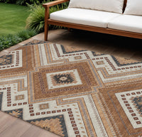 9' X 12' Copper Brown And Beige Tribal Washable Indoor Outdoor Area Rug