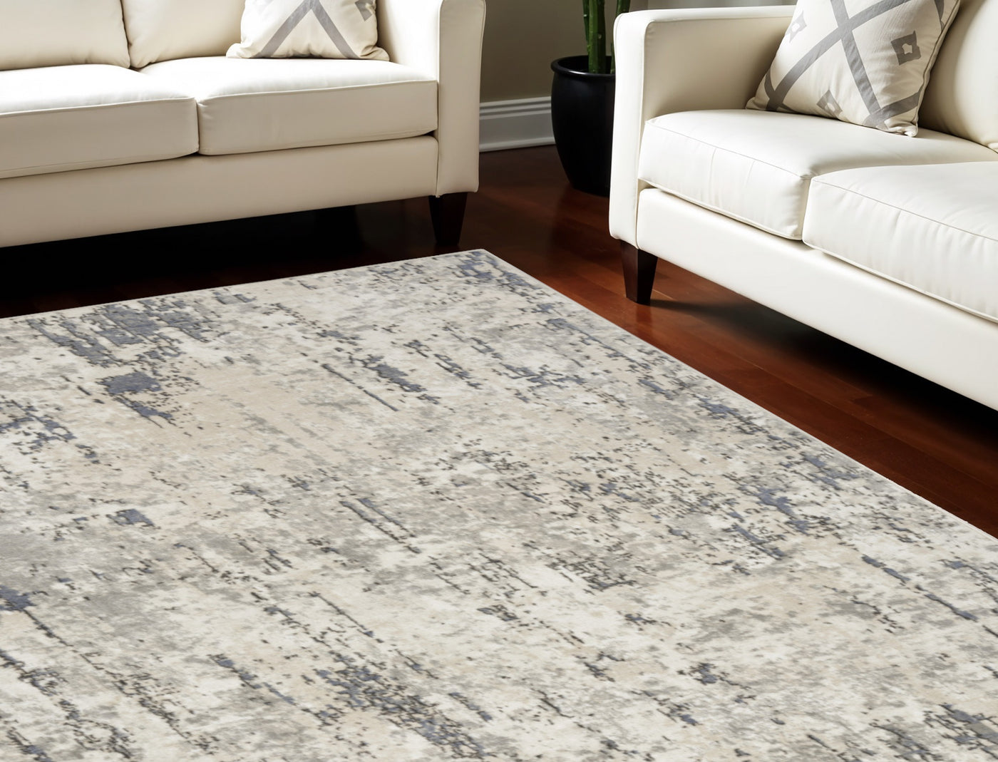 Add great coloration and comfortable texture to your space with this 9-foot x 12-foot cream abstract power loom area rug. This rectangle shaped rug features a abstract design in cream to give it visual interest. A classic shape marries with good looking design for your space the coloring of this rug adds a delightfully neutral tone to your home and will easily match with most any decor. Place this area rug against a hardwood or tile floor and it will enliven your living space with style and sophistication. 106-inch H x 142-inch W x 0.32-inch D