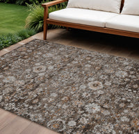 9' X 12' Dark Brown Brown And Taupe Oriental Washable Indoor Outdoor Area Rug