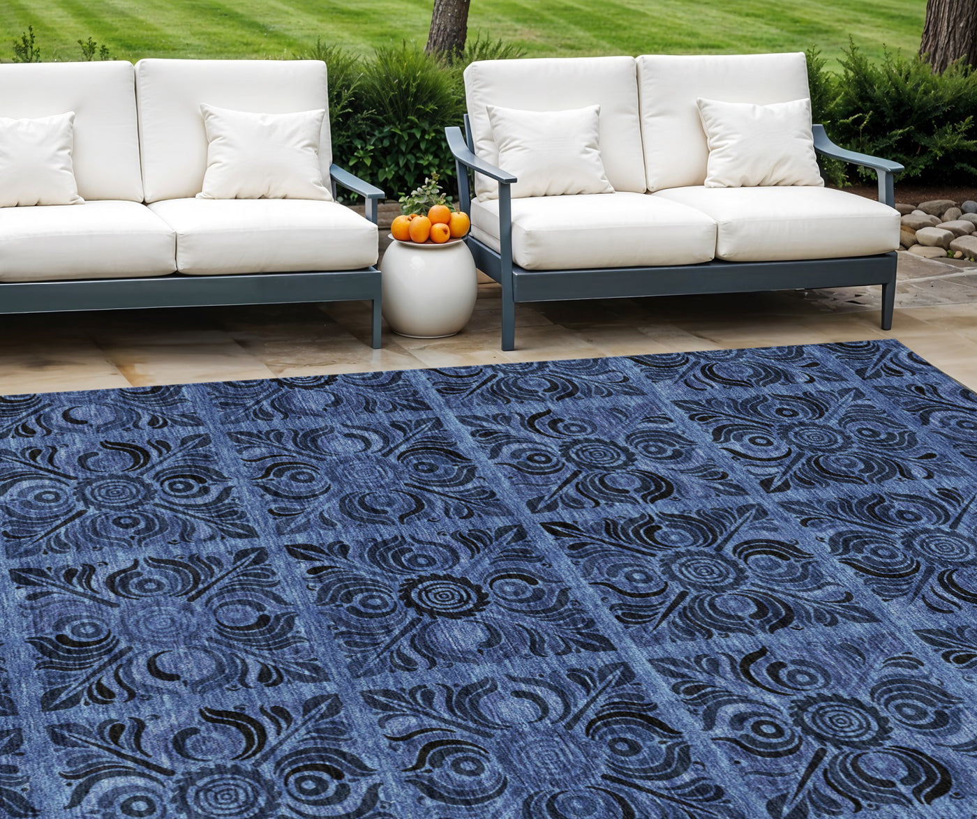 Add great coloration and comfortable texture to your space with this 9-foot x 12-foot denim blue and charcoal medallion washable indoor outdoor area rug. This rectangle shaped rug features a medallion design that will work well both indoors or out. A classic shape marries with good looking design for your living room, hall, bedroom, porch, patio, or poolside. Ideal for outdoor spaces or high traffic areas with kids and pets, this rug is made from heavy duty polyester that is stain resistant to help repel water, dirt, and stains. Makes a great way to dress up your patio, porch, or poolside, but also works well as a durable and easy to maintain option in the kitchen, family room, or mudroom. 108-inch h x 144-inch w x 0.19-inch d.