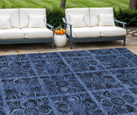 9' X 12' Denim Blue And Charcoal Medallion Washable Indoor Outdoor Area Rug