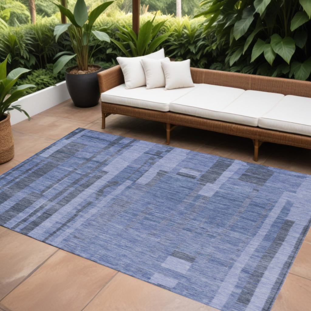 9' X 12' Denim Blue And Charcoal Striped Washable Indoor Outdoor Area Rug