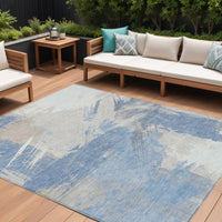 9' X 12' Denim Blue Beige And Ivory Abstract Washable Indoor Outdoor Area Rug