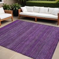 9' X 12' Eggplant Striped Washable Non Skid Indoor Outdoor Area Rug