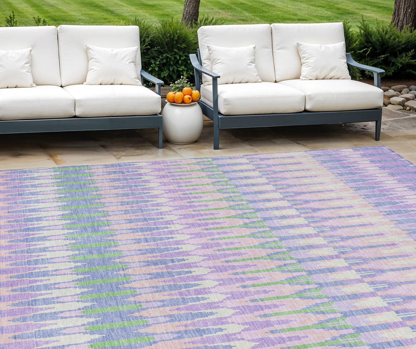 9' X 12' Lavender Pink And Lime Green Southwestern Washable Indoor Outdoor Area Rug