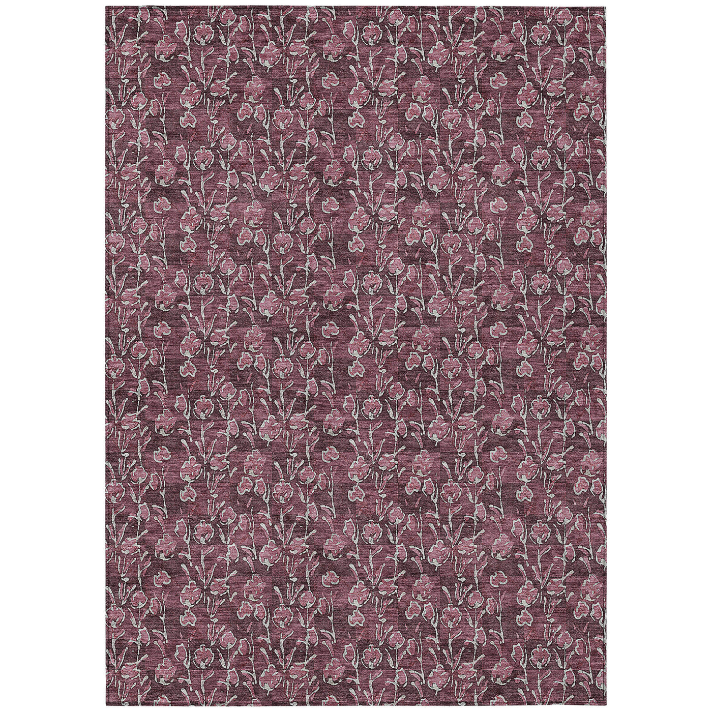 9' X 12' Merlot Mauve And Ivory Floral Washable Indoor Outdoor Area Rug