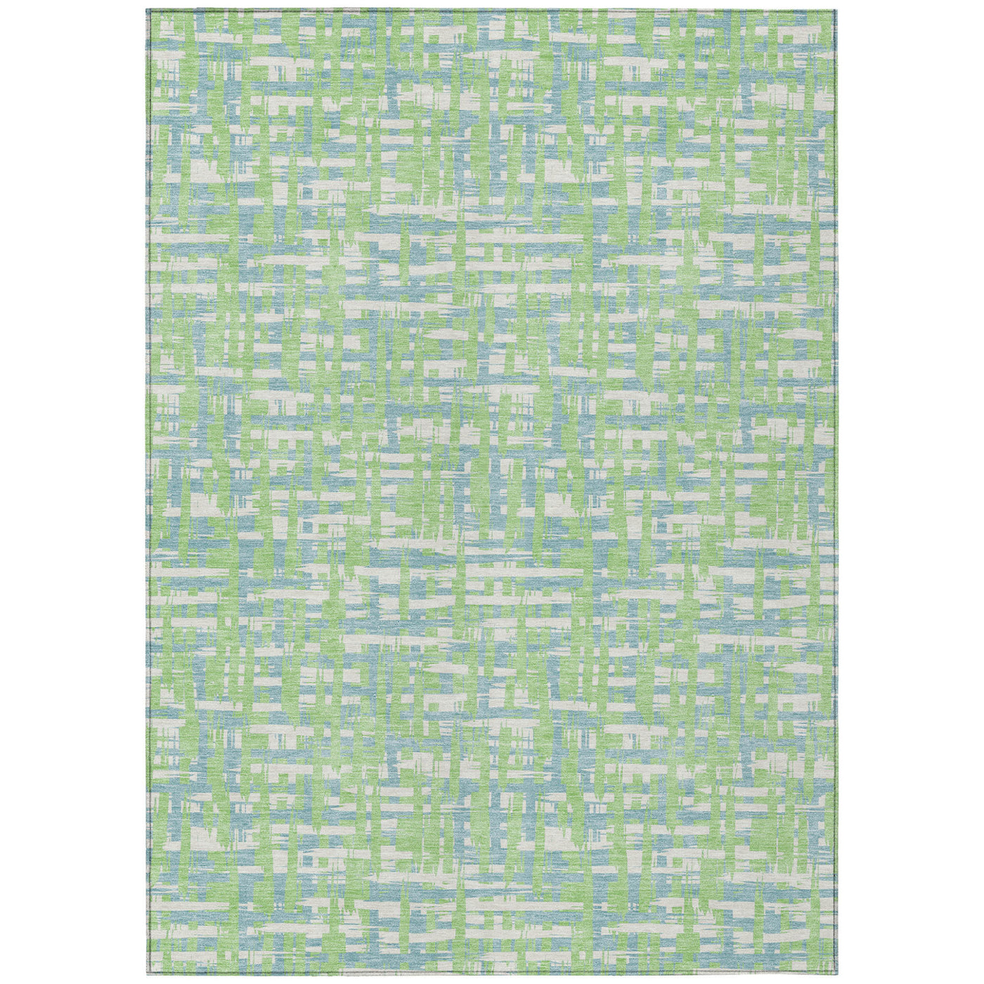 9' X 12' Mint Green Blue And Beige Abstract Washable Indoor Outdoor Area Rug