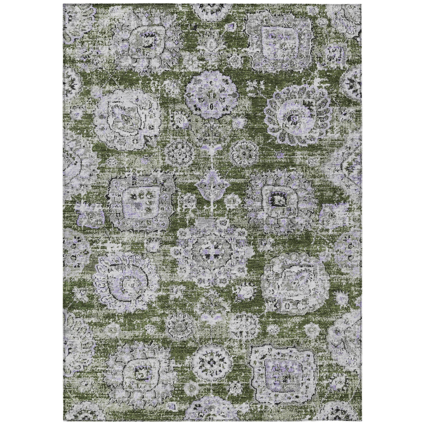 9' X 12' Olive Green And Gray Floral Washable Indoor Outdoor Area Rug