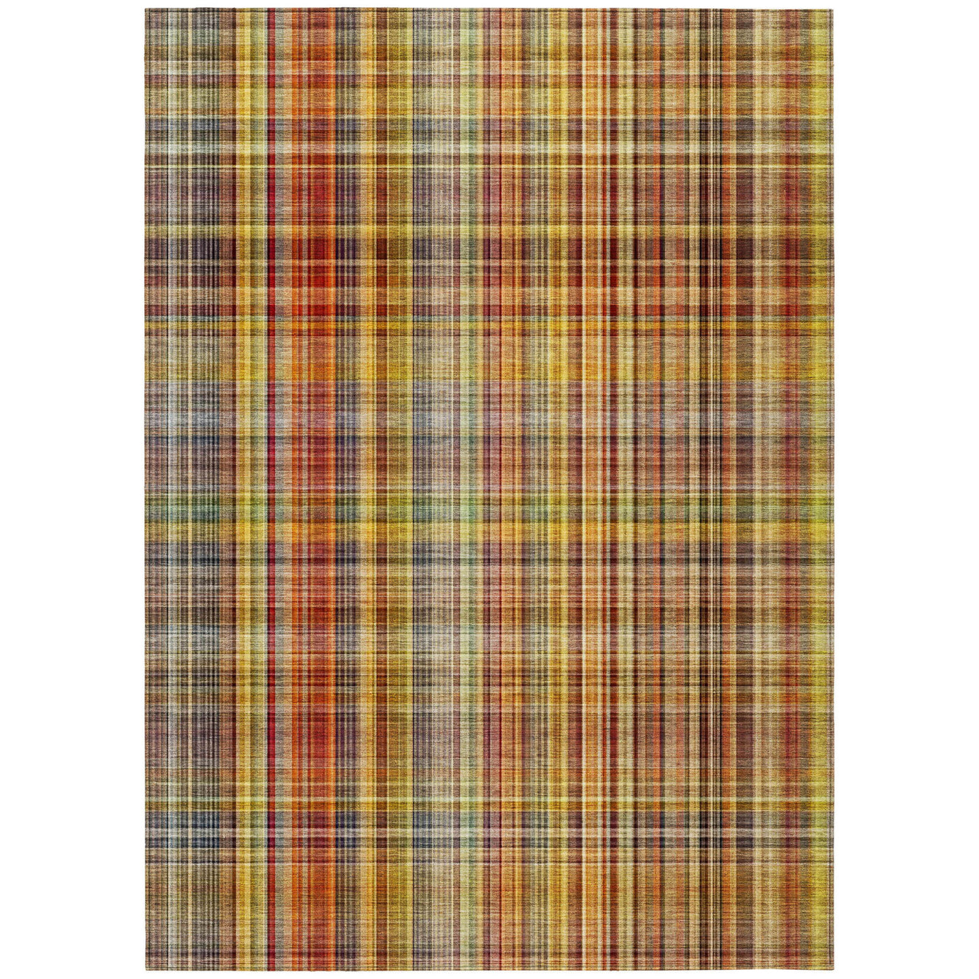 9' X 12' Orange Plaid Washable Non Skid Indoor Outdoor Area Rug