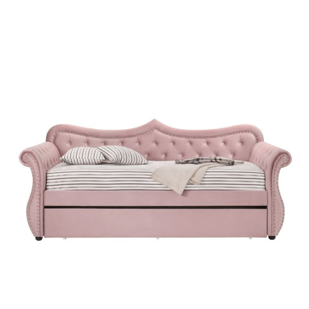 Acme Adkins Tufted Upholstered Daybed and Trundle in Pink Velvet