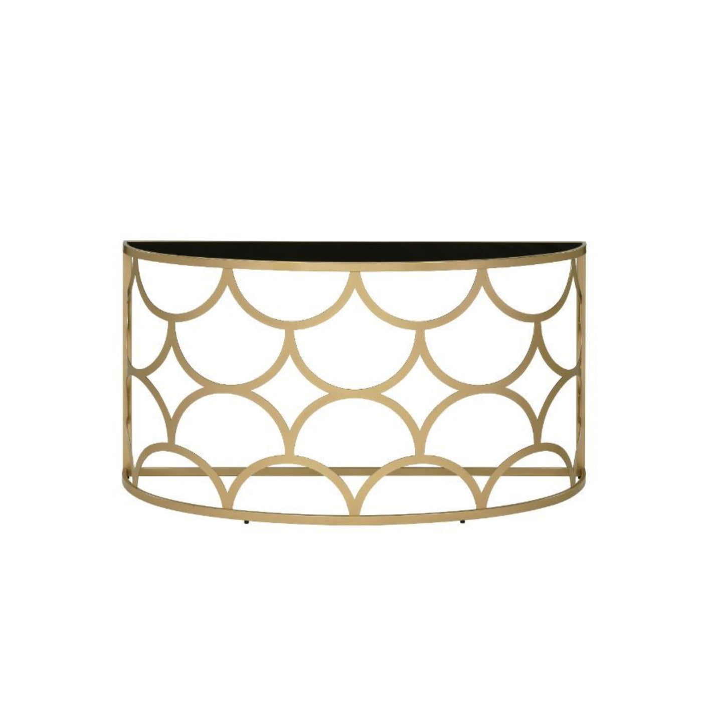 Acme Altus Half Moon Glass Top Console Table With Metal Base In Gold