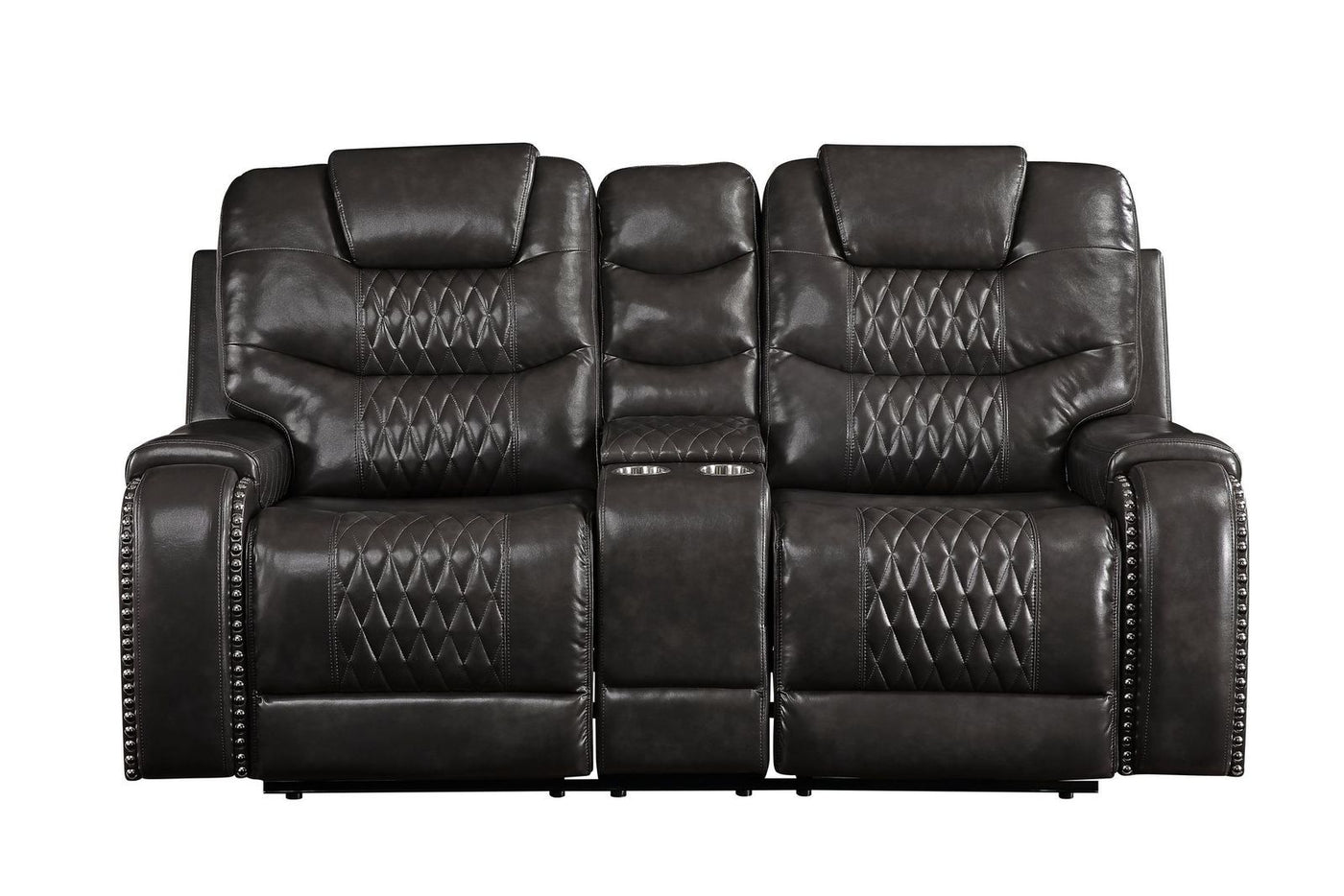 Acme Braylon Faux Leather Reclining Loveseat with Console in Magnetite Black