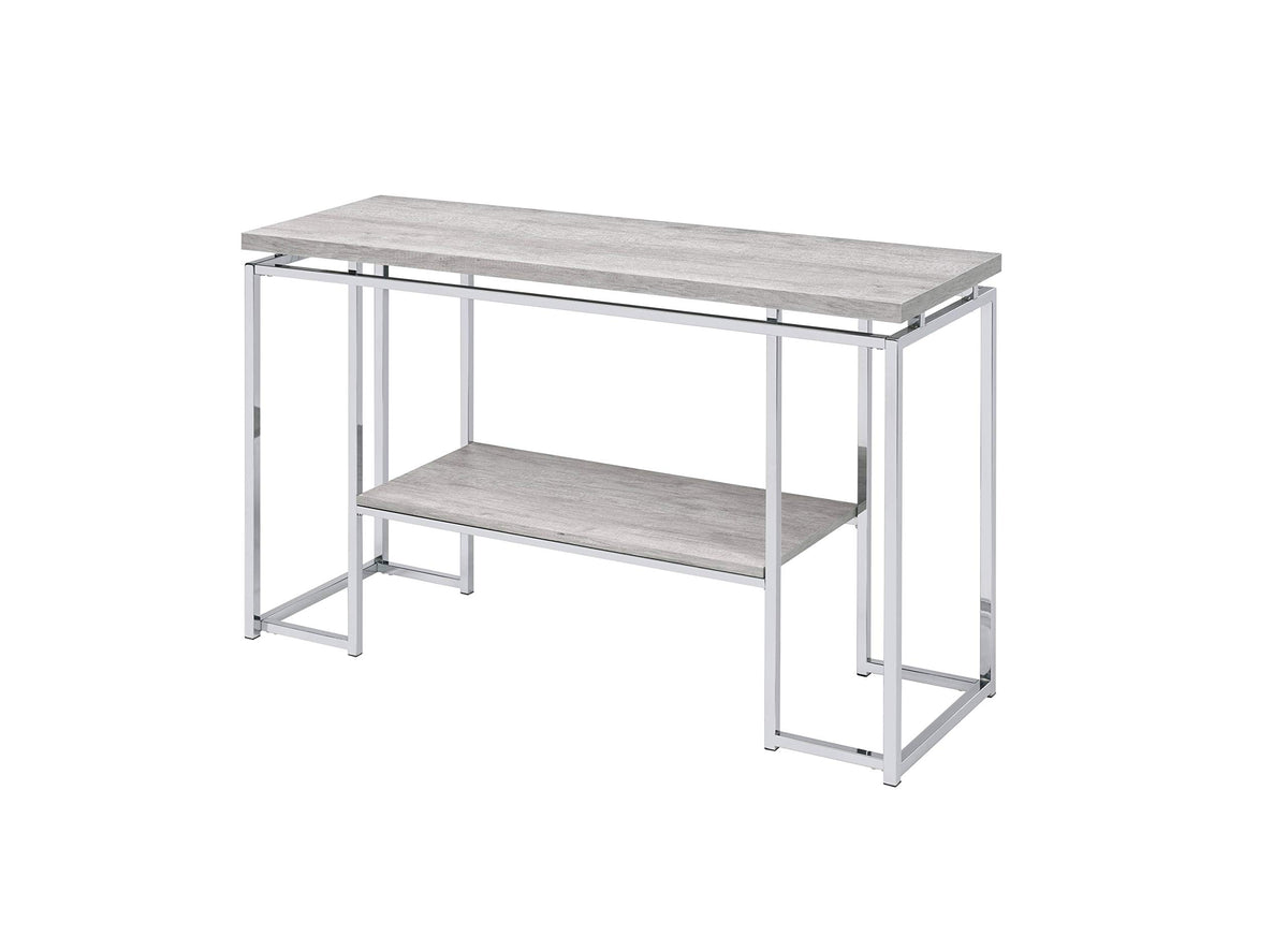 Acme Chafik Rectangular Wooden Top Sofa Table With Shelf In Oak And Chrome