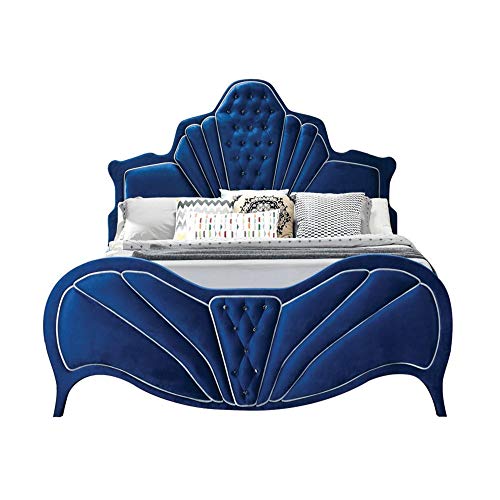 This Fully Padded Blue Velvet Bed Is Visually Stunning, Including Beautiful Channel Tufting And Contrasting Welted Trim Arched Head And Footboards. The Blue Velvet Makes You Feel More Comfortable. If You Need A Bed, It Is The Best Choice.