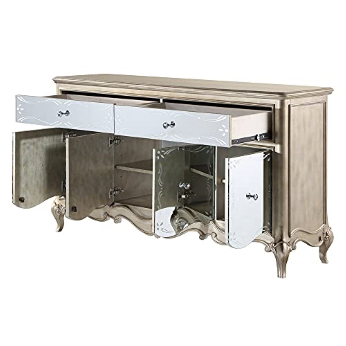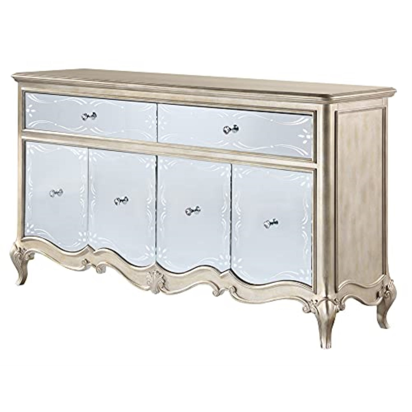 Acme Esteban Wooden Server with Shelf in Mirrored and Antique Champagne