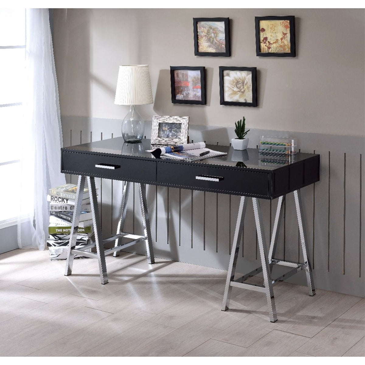 Acme Furniture Coleen Built-In Usb Port Writing Desk In Black High Gloss & Chrome Finish