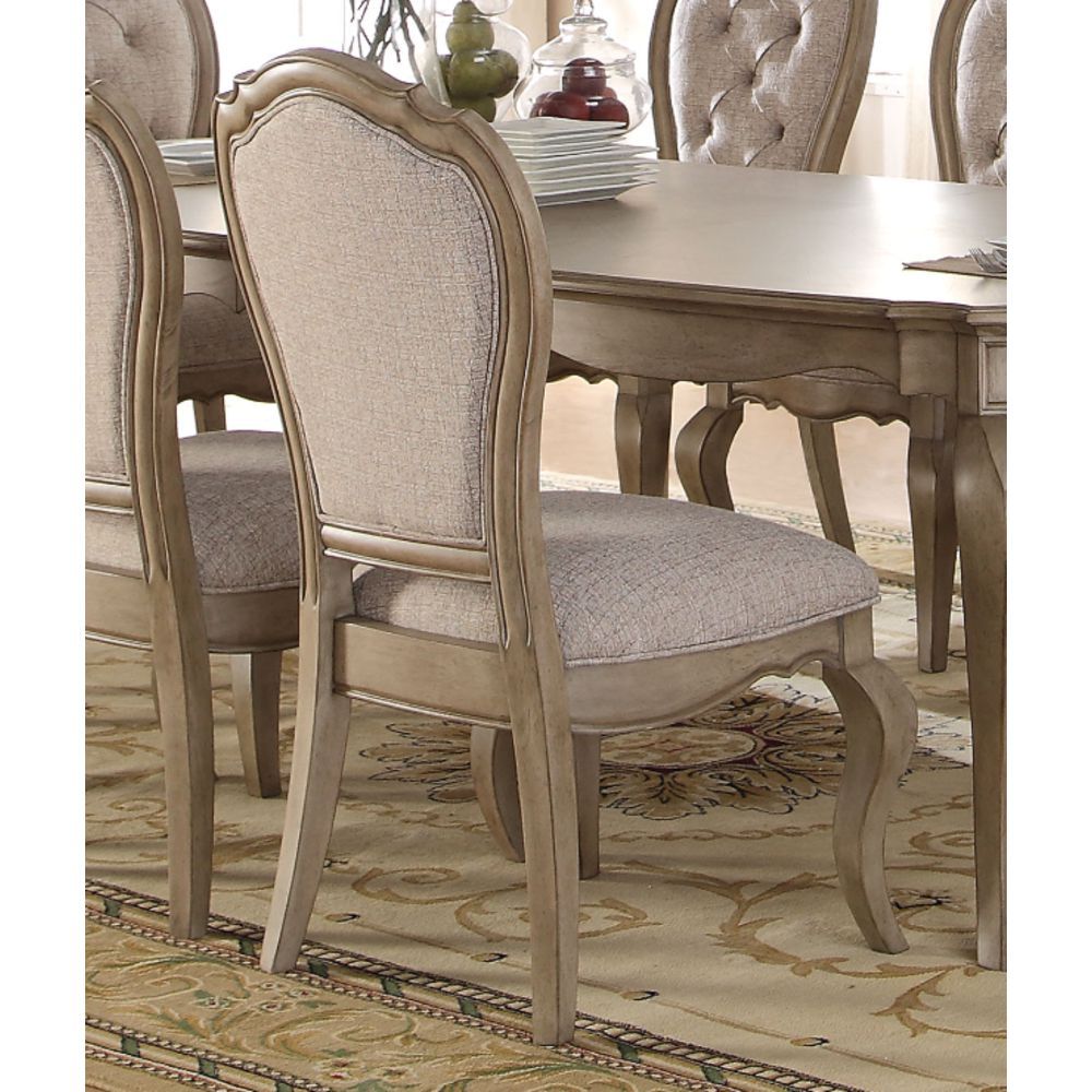 Crafted with curved apron table leg and button tufted chair Back in light color, the Chelmsford collection will create your dining room a relaxing environment and be more comfortable. The Chelmsford will be your ideal choice to decorate your dining room.