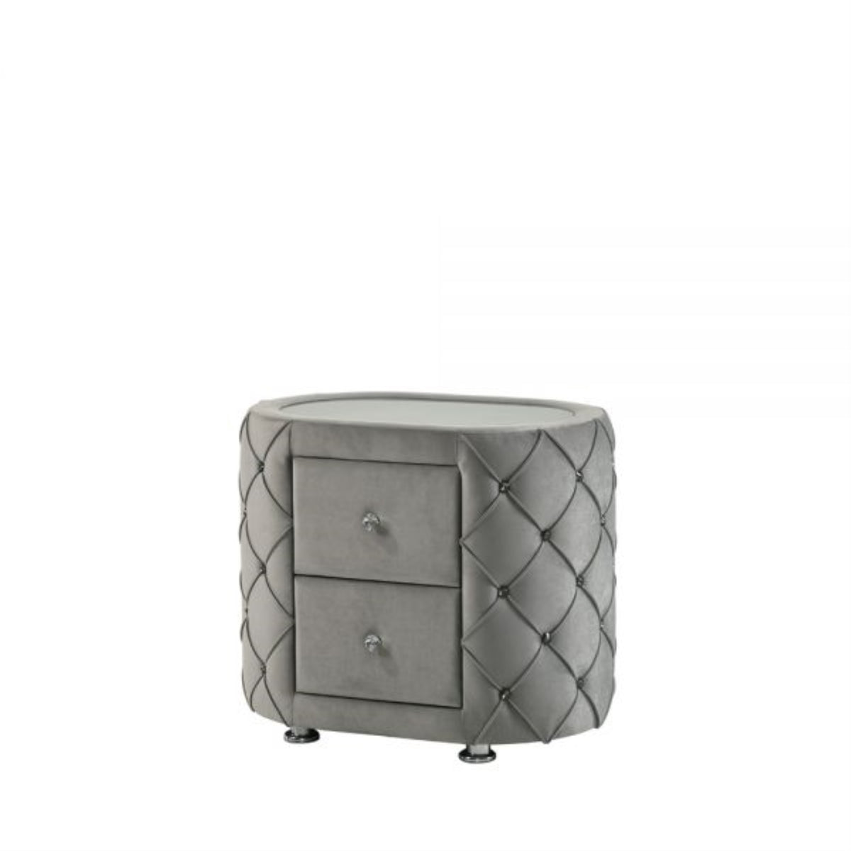 Acme Furniture Upholstered Nightstand with 2 Drawers, Gray Velvet