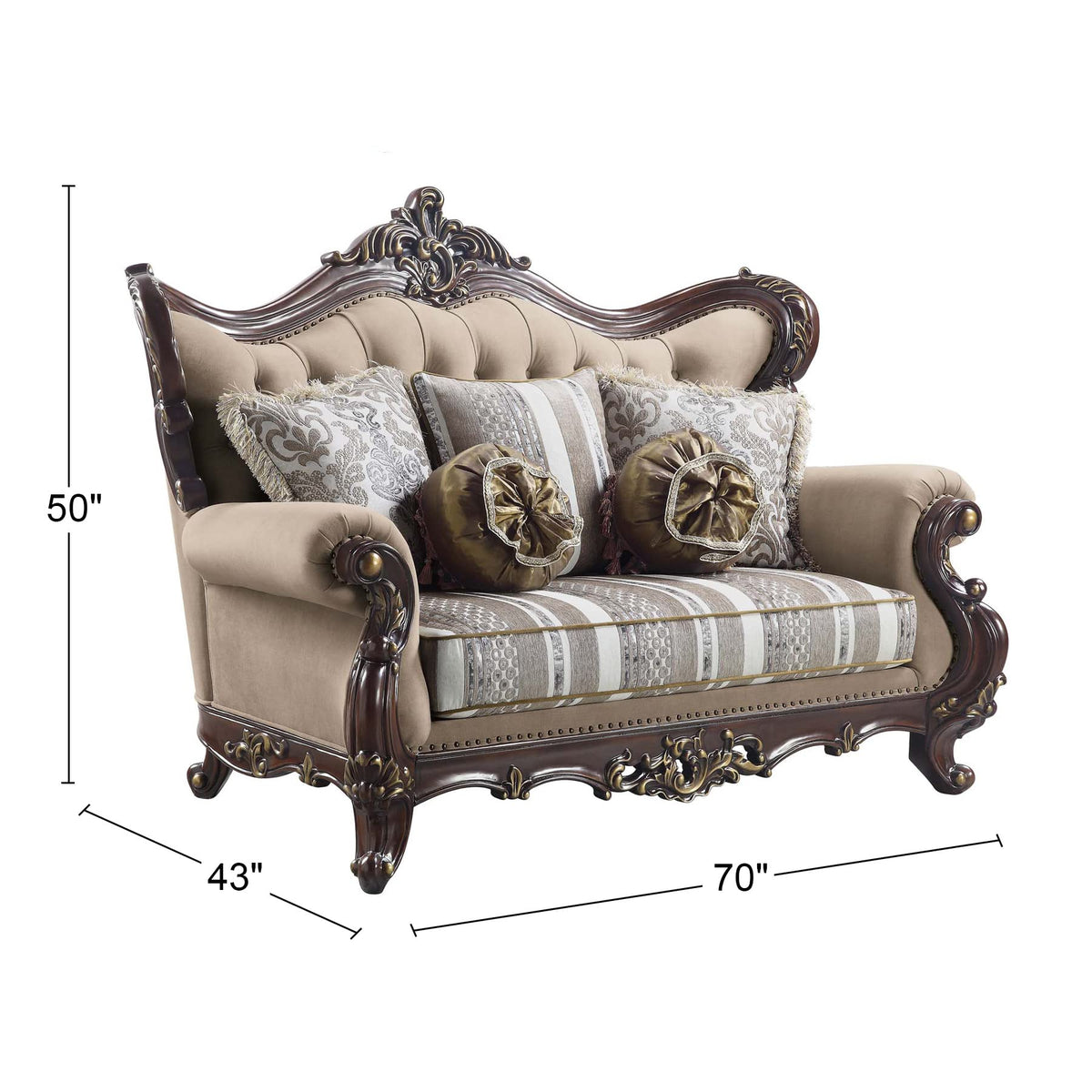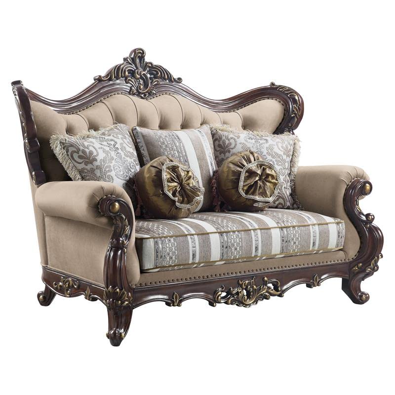 Acme Furniture Upholstery Loveseat with Arched Backrest, Light Brown and Cherry
